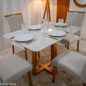 Mesa Jantar Cancun 120×90 4 Cadeiras Linho Bege 178 Cel Móveis