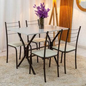 Mesa Rio Base Cabo Frio Marrom Tampo Pedra Off 100×60 4 Cadeiras Assento Creme – Teixeira