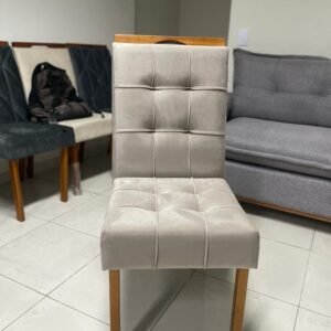 Mesa Dora 120 (Tampo 40 mm) Cinamomo/Off White com 4 Cadeiras Sophia Veludo Cinza Grafite – VALDEMÓVEIS + WM DECOR