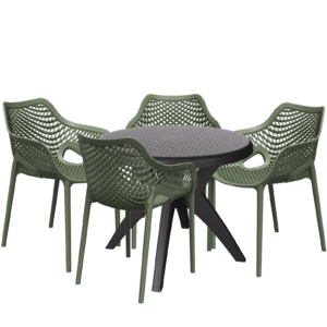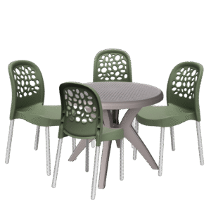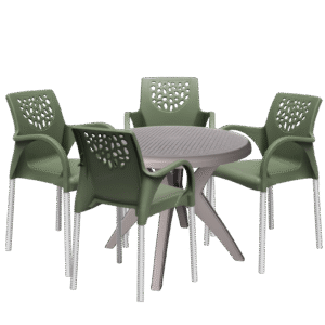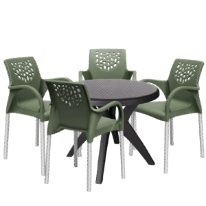 Mesa Deluxe 90 Nude com 4 Cadeiras Deluxe Verde – FORTE PLÁSTICO