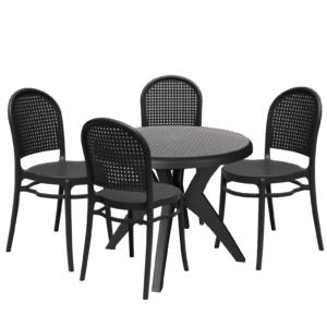 Mesa Deluxe 90 com 4 Poltronas Deluxe Preto – FORTE PLÁSTICO