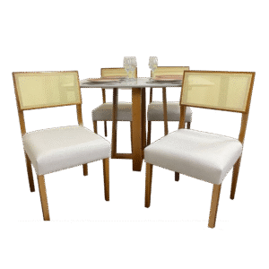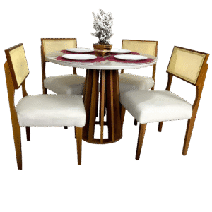 Mesa Pedro 90 Mel/Off White + 4 Cadeiras Grécia Mel/Linho Bege – ART ASSENTOS + HR MOVELARIA
