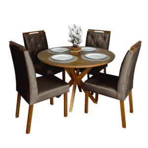 Mesa Redonda Simpatia 108 Cinamono com 4 Cadeiras Yasmim Veludo Marrom – JCM MOVELARIA + KM DECOR