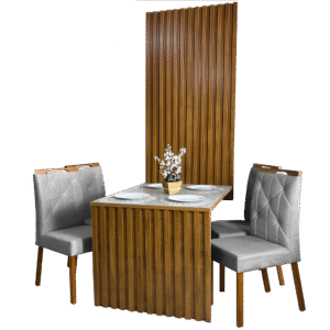 Mesa Cancun 120 Cinamomo/Off White com 4 Cadeiras Yasmim Veludo Cinza – CEL MÓVEIS + KM DECOR