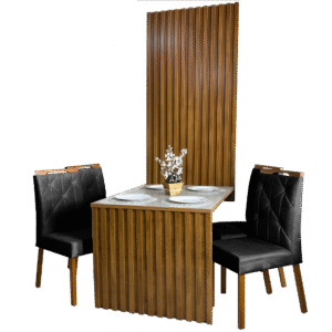Mesa Átria 1594 Redonda 100 Preto/Nogal com 4 Cadeiras Lux 1741 Preto/Linho Grafite/Corino Preto – CARRARO MÓVEIS