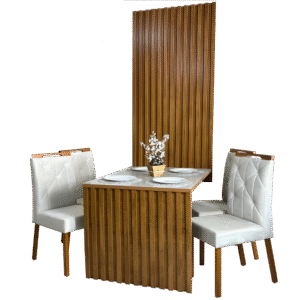 Mesa Pedro 120 Mel/Off White + 4 Cadeiras Grécia Mel/Linho Bege – ART ASSENTOS + HR MOVELARIA