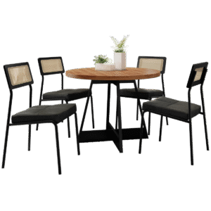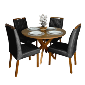 Mesa Redonda Simpatia 108 Cinamono com 4 Cadeiras Yasmim Veludo Preto – JCM MOVELARIA + KM DECOR