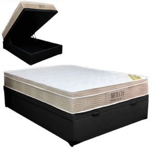 Colchão Casal Orthosono + Base Box Baú Corino Preto – ANJOS + BIOSTAR