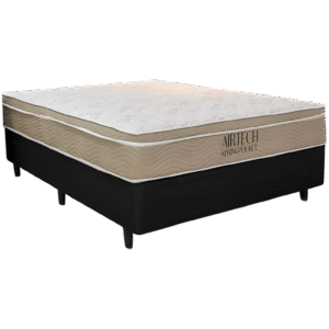 Colchão Casal Airtech Springpocket + Base Box Baú Corino Preto – ORTOBOM + BIOSTAR