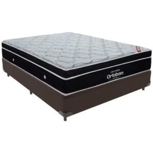 Colchão Casal Elegant Superpocket D33 + Base Box Simples Corino Preto – ORTOBOM + BIOSTAR