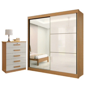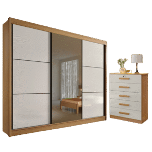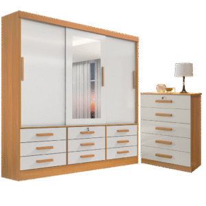 Guarda-Roupa 3 Portas Meridian + Cômoda Ipanema Cinamono/Off White – D’DORO MÓVEIS