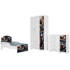 Guarda-Roupa 3 Portas Lívia + Cômoda Lívia + Mini Cama Juvenil Lívia (Menino) Homem-Aranha 14 – MADEC/VJ MÓVEIS