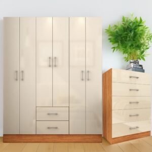 Guarda-Roupa 6 Portas Jamaica 6002 + Cômoda 5 Gavetas Aruba Cinamomo/Off White – FELLICCI