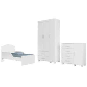 Guarda-Roupa 3 Portas Lívia + Cômoda Lívia + Mini Cama Juvenil Lívia Branco(Sem adesivo) – MADEC/VJ MÓVEIS