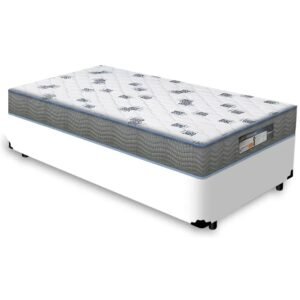 Colchão Solteiro Light D20 + Base Box Simples Corino Branco – ECOTEC + BIOSTAR