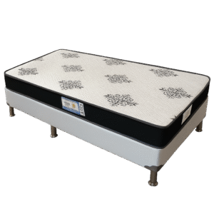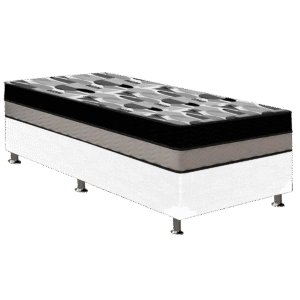 Colchão Solteiro Light D20 + Base Box Simples Corino Preto – ECOTEC + ALTO NÍVEL CAMAS E COLCHÕES