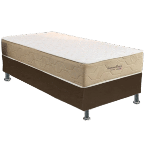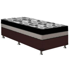 Colchão Solteiro Light D20 + Base Box Simples Corino Marrom – ECOTEC + ALTO NÍVEL CAMAS E COLCHÕES