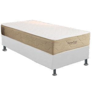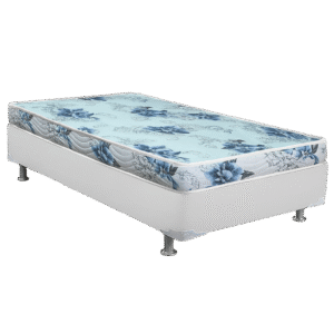 Colchão Solteiro Light D20 + Base Box Simples Corino Branco – ECOTEC + ALTO NÍVEL CAMAS E COLCHÕES