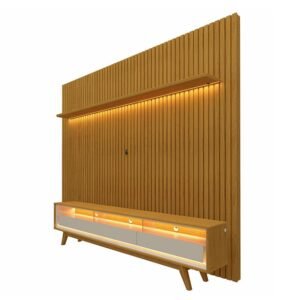 Painel até 85″ Nobre 230 Naturale + Rack Nobre 210 (Pés de Madeira) Off White/Naturale – GELIUS