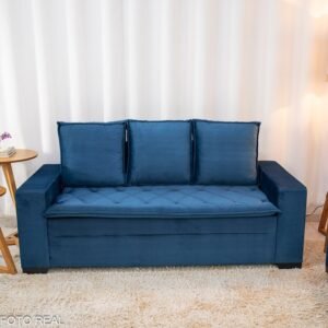 Sofá 3 e 2 lugares França com Puff Veludo Azul A16