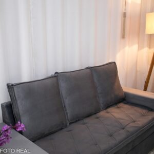 Sofá 3 e 2 lugares França com Puff Veludo Cinza A15