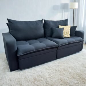 Sofá Retrátil Havaí 1,80 m Veludinho Preto – QUINE ESTOFADOS