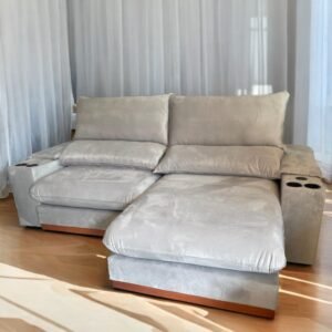 Sofá Retrátil e Reclinável Porto Madero/Brasão 2,75 m Veludo Bege – IMPERIAL DECOR