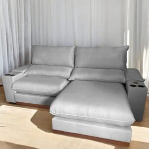 Sofá Retrátil e Reclinável Barcelona 2,50 m Veludo Cinza 321 – ESTOFADOS TEIXEIRA