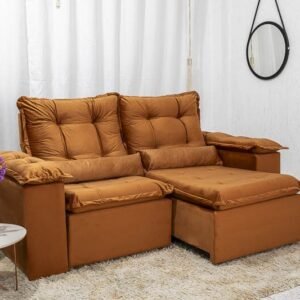 Sofá Retrátil Reclinável Grécia 2.00m Veludo Terracota – Sem Caixa
