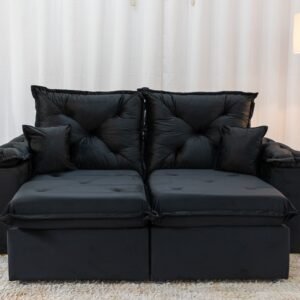 Sofá Retrátil Reclinável Porto Madri 2.00m Veludo Preto – D28 Pró Aditivada