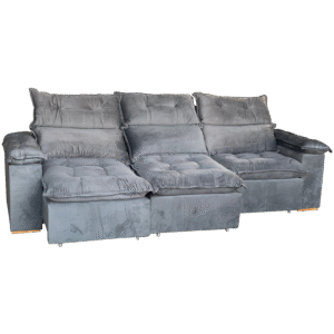 Sofá Retrátil e Reclinável Porto Madero/Brasão 2,75 m Veludo Cinza Grafite – IMPERIAL DECOR