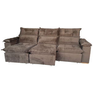 Sofá Retrátil e Reclinável Porto Madero/Brasão 2,75 m Veludo Marrom – IMPERIAL DECOR