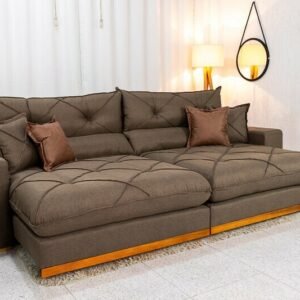 Sofá Retrátil Reclinável Gran Bello 2.90m Linho Marrom – Molas Ensacadas