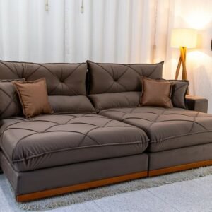 Sofá Retrátil Reclinável Gran Bello 2.90m Veludo Marrom – Molas Ensacadas