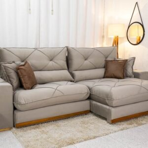 Sofá Retrátil Reclinável Barcelona 2.90m Linho Capuccino 420 – D33 e Molas Ensacadas