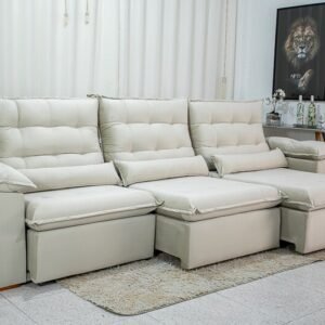 Sofá Retrátil Reclinável Monaco 3.20m Linho Bege A57 – Molas Ensacadas
