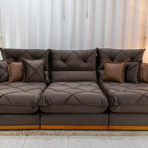 Sofá Retrátil Reclinável Gran Bello 3.20m Veludo Marrom – Molas Ensacadas