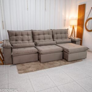 Sofá Retrátil Reclinável Gran Bello 3.20m Veludo Capuccino – Molas Ensacadas