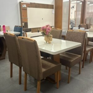 Mesa Salinas/Helô/Los Angeles 90 Cinamomo/Off White com Cadeiras Pandora 01 Veludo Marrom 134 – CEL MÓVEIS + CARVALHO
