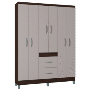 Guarda-Roupa 6 Portas Milão 1,35 m Chocolate/Off White – POQUEMA